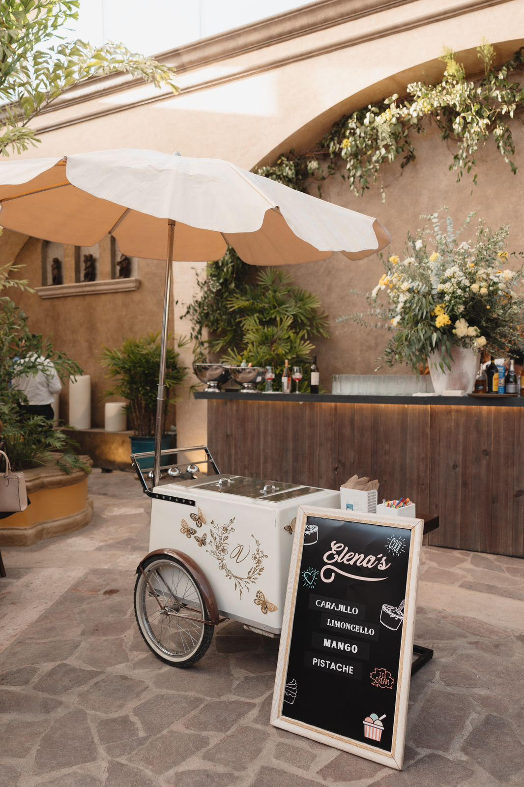 Carrito con diseño italiano Se sirve cono o vaso en el momento para vivir una autentica experiencia del gelato. Ideal para eventos de 100 a 300 personas.