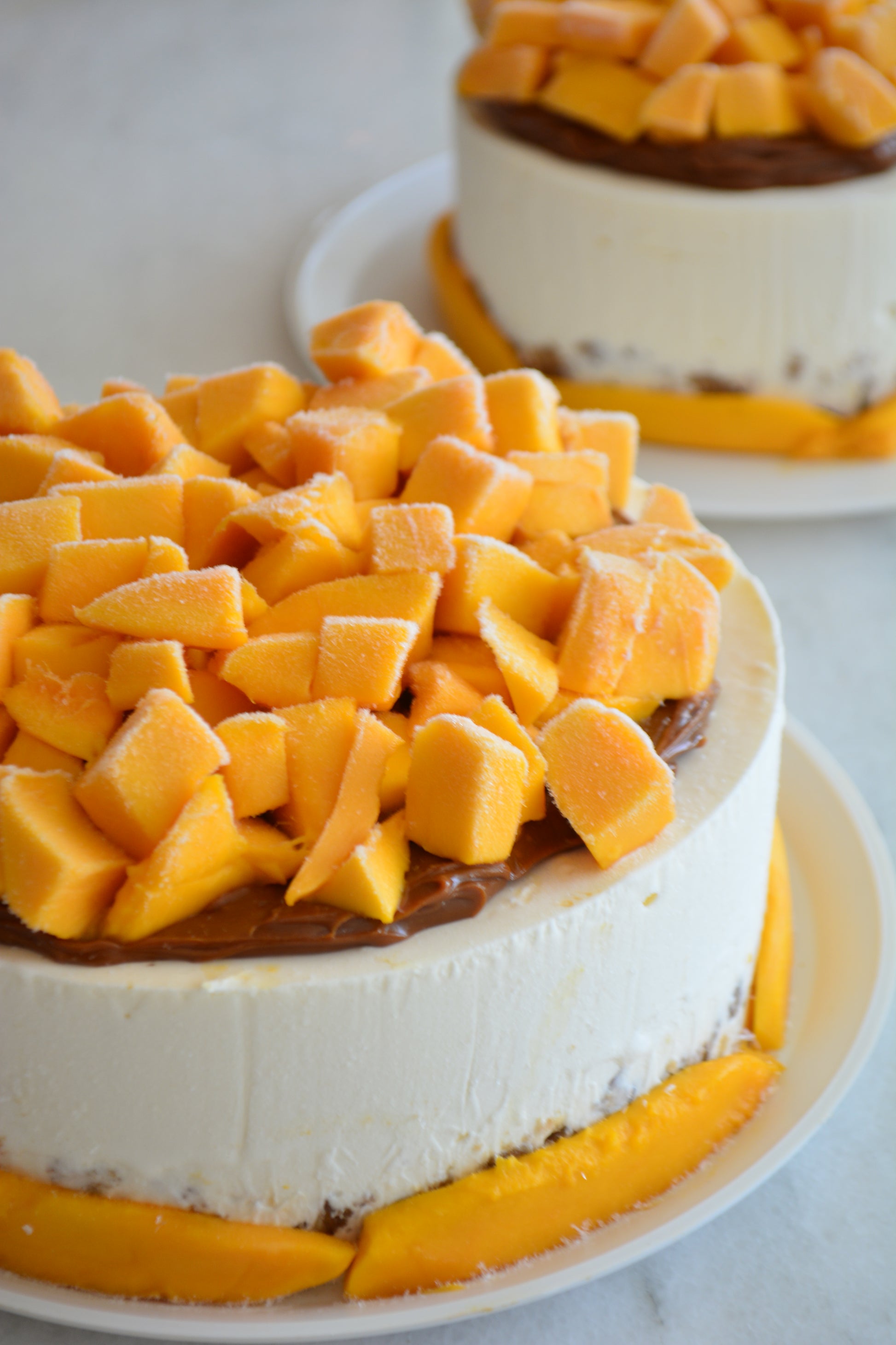 Delicioso pastel de mostachón como base, cremoso helado de coco, dulce de leche y mango 100% naturales que le dan al pastel un toque perfecto. ¡De nuestros pasteles más vendidos!