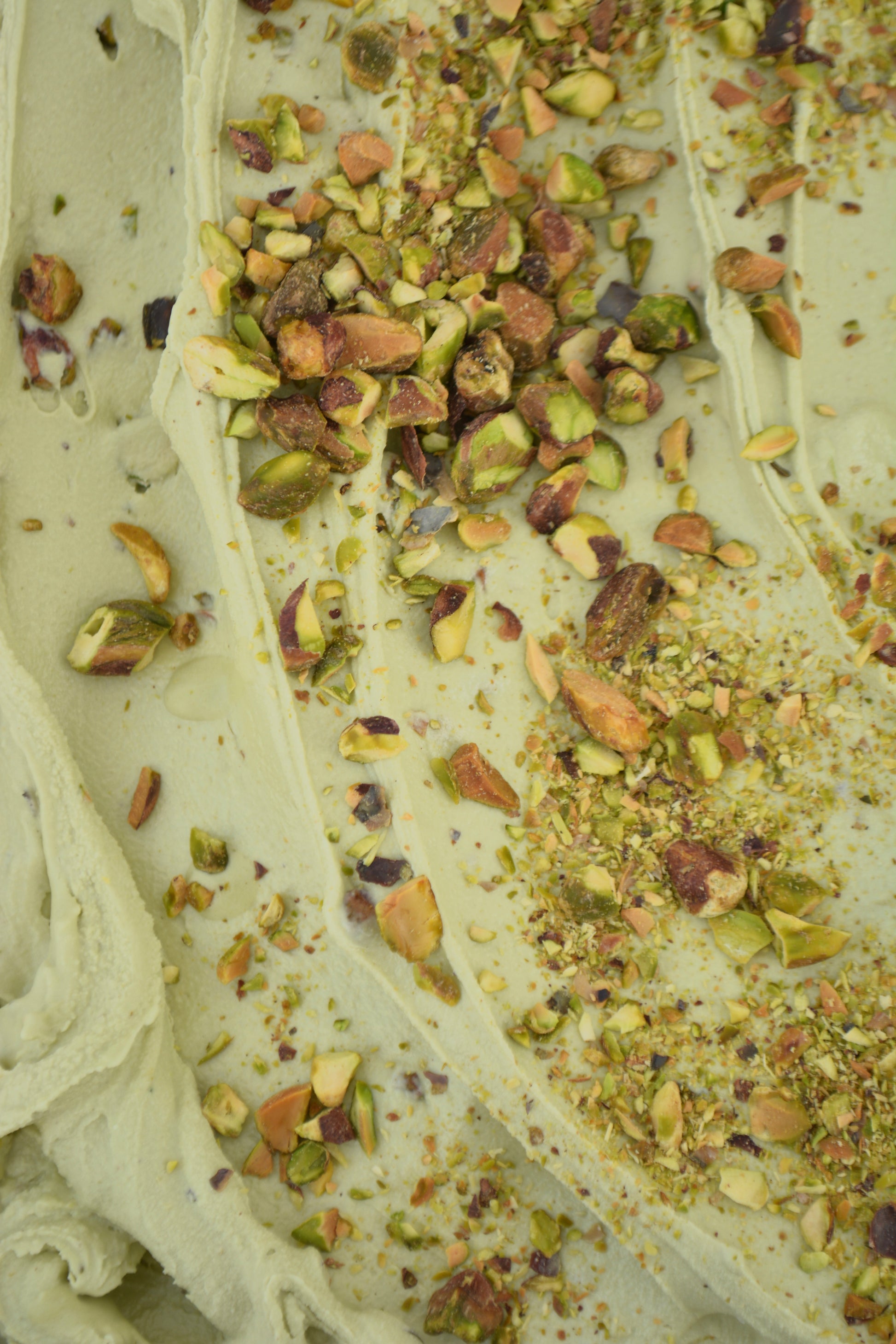 Elaborado con leche descremada deslactosada, pasta de pistache natural y trozos de pistache. Contiene hasta 5 gramos de proteína por porción de 100 gramos