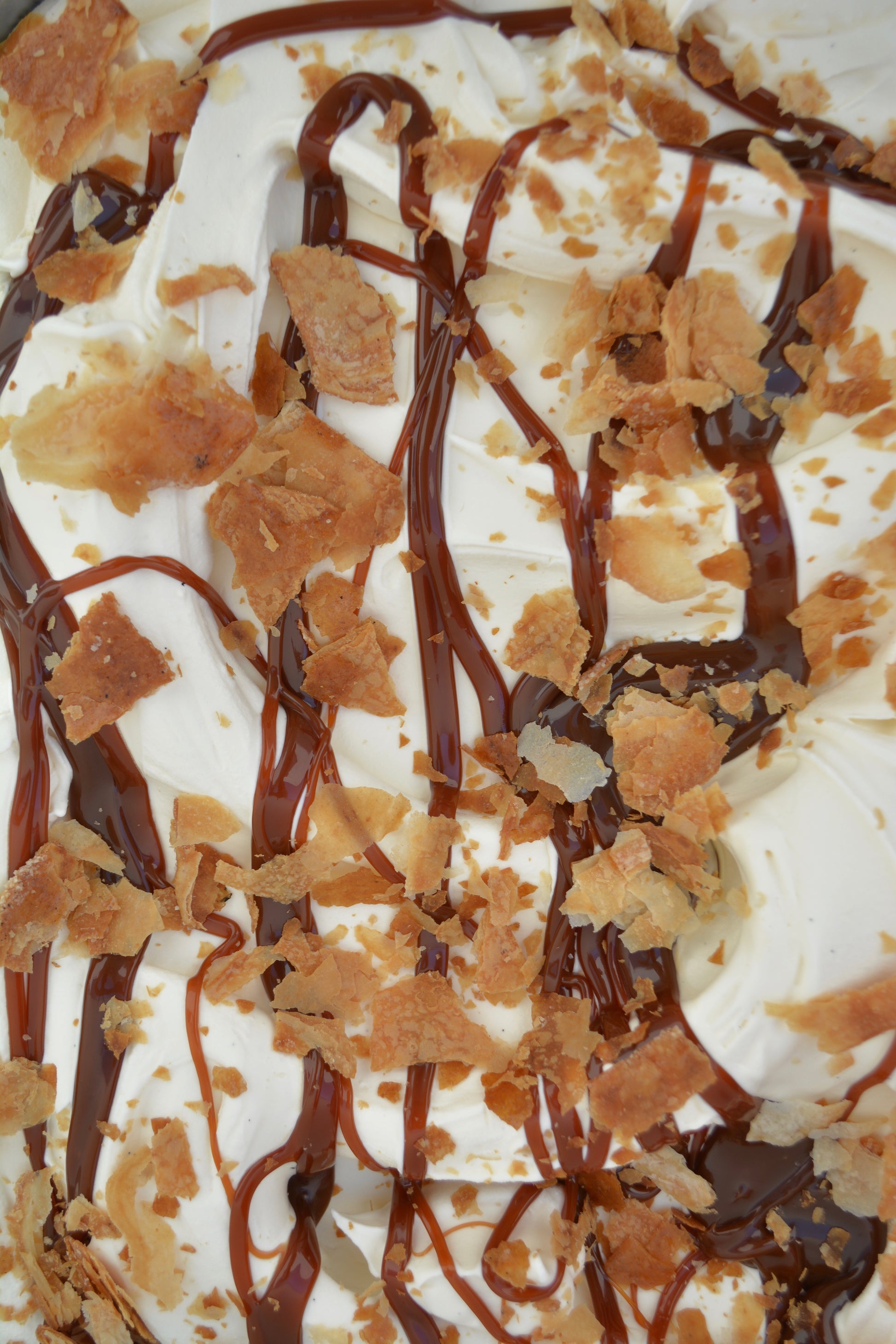 Cremoso helado de vainilla elaborado con vaina de vainilla natural, leche quemada y un toque crujiente de campechanas traidas de Parras de la Fuente. ¡El mas vendido!